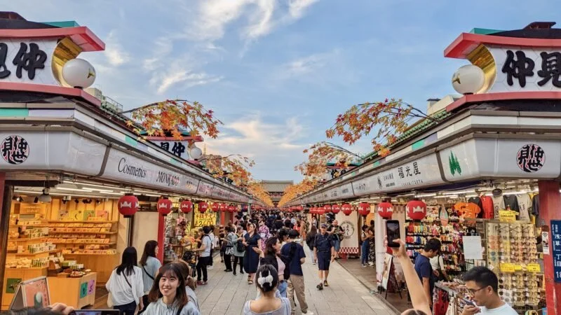 Beyond it lies Nakamise-dōri, a bustling corridor of market stalls selling traditional sweets, handcrafts, and souvenirs dating back roughly 300 years.